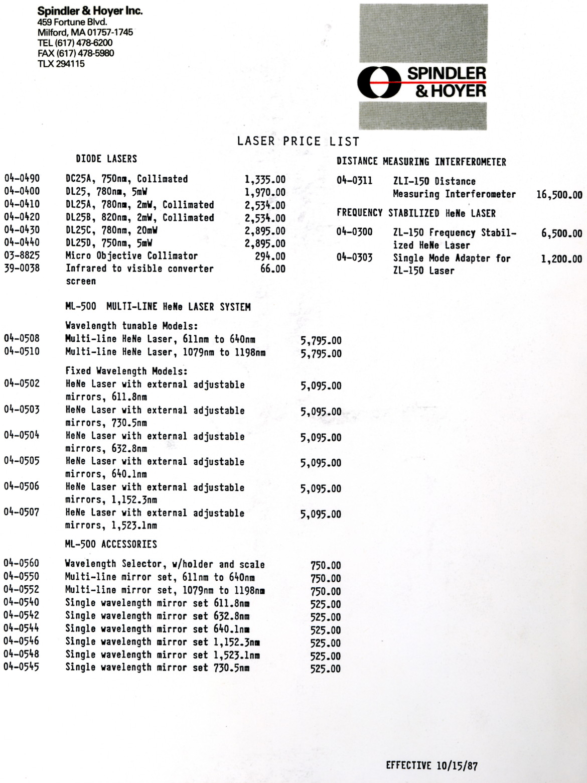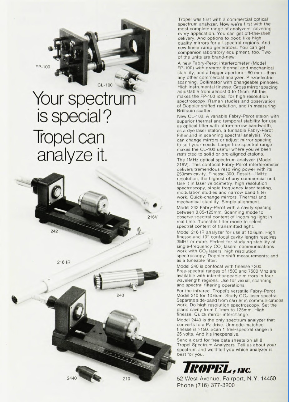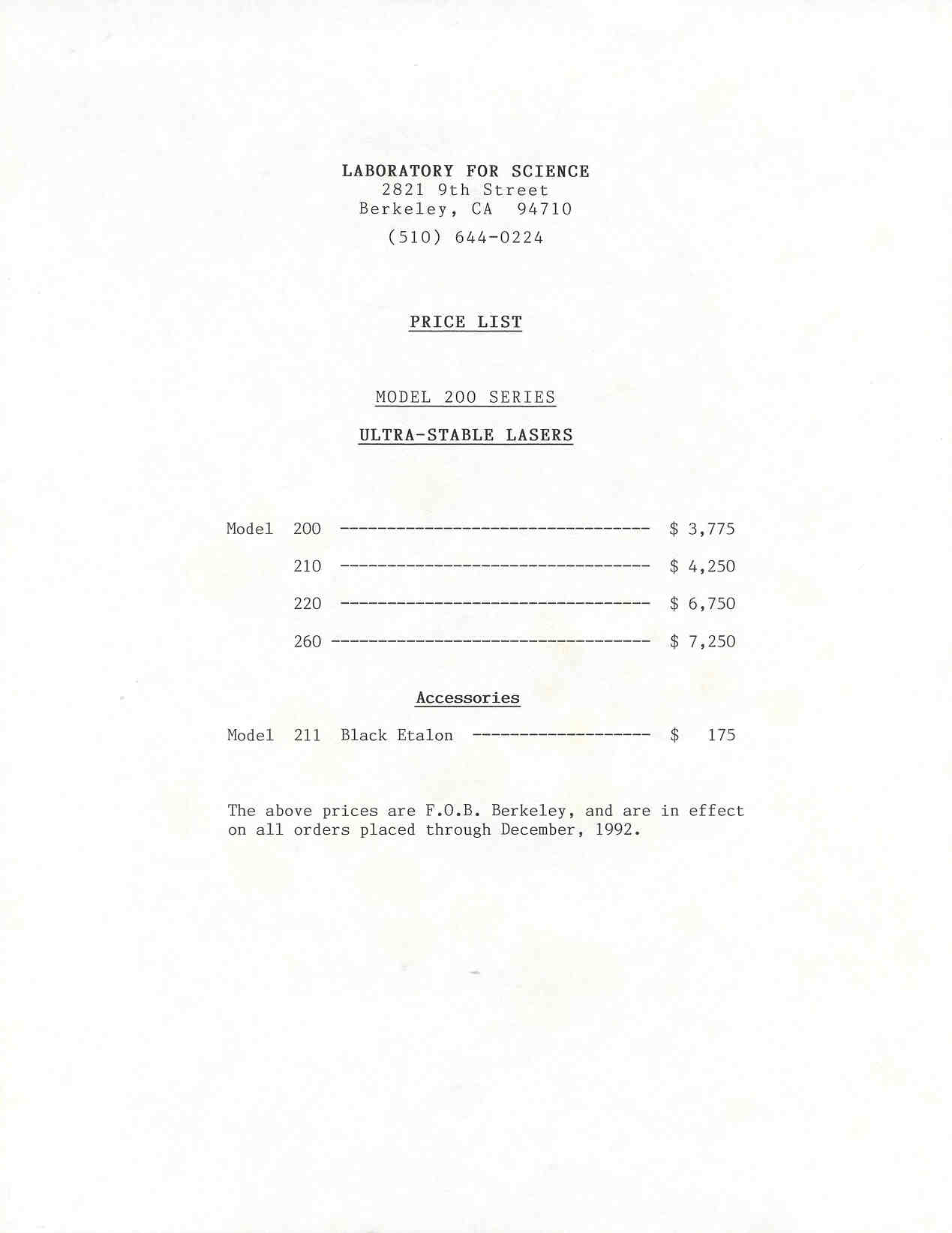 Note: The Model 200 html version brochure was created by David Woolsey. I used his template with permission to create similar ones for the Model 220 html based on original Model 220 and Model 260 brochures. The original Model 260 brochure and 1987 price list came from Ajax Electronics Laser/Optics Manuals under "LFS". There is also a Model 200 operation manual there.
