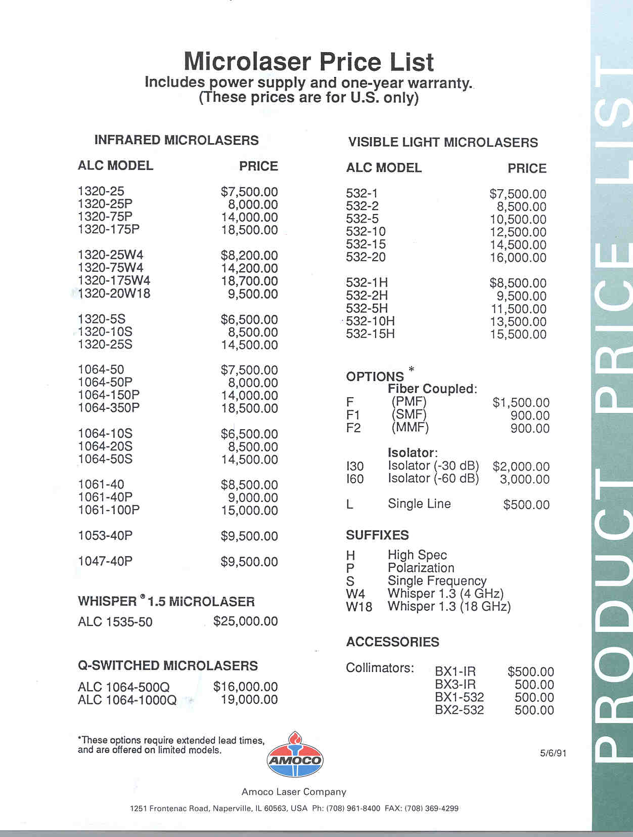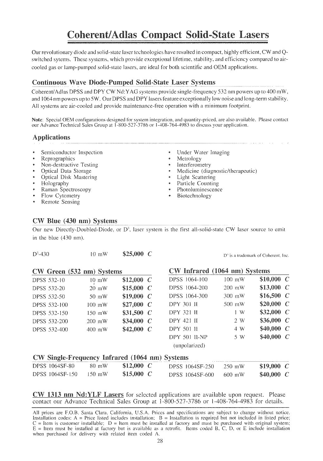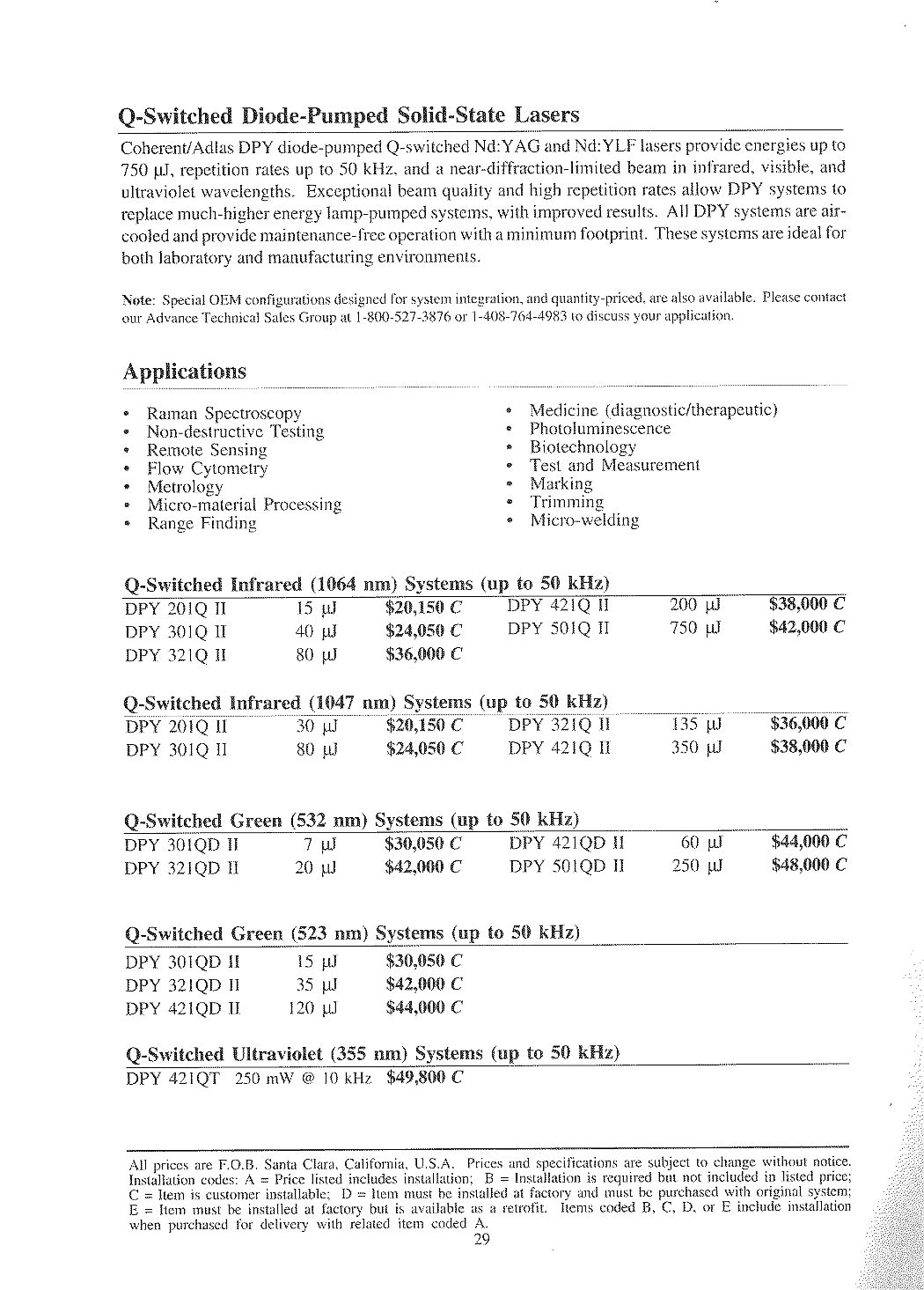 Note: The Model 200 html version brochure was created by David Woolsey. I used his template with permission to create similar ones for the Model 220 html based on original Model 220 and Model 260 brochures. The original Model 260 brochure and 1987 price list came from Ajax Electronics Laser/Optics Manuals under "LFS". There is also a Model 200 operation manual there.