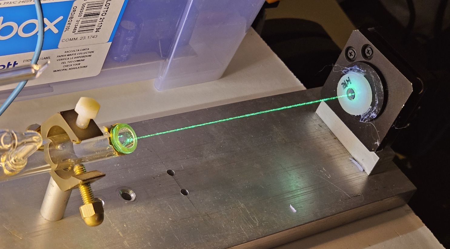 With type 2 broad band mirrors we obtained lines in green and yellow, while with ALC mirrors we have blue, green but no longer yellow. However, it must be said that: the discharge current unfortunately is a maximum of 80 mA, with higher currents new lines are also generated, we will see in the future with another power supply with greater current. The laser has been working for days and is still in excellent operating condition.