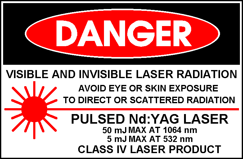 - Class IV Danger Label - Pulsed Nd:YAG Laser, 50 mJ Maximum Output at 1064 nm, 5 mJ Maximum Output at 532 nm (cl4yag2.gif).