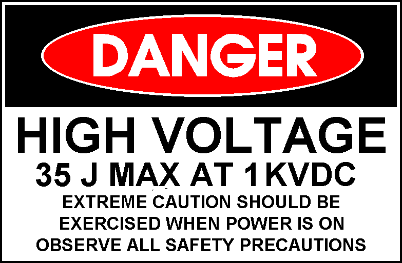 - High Voltage Danger Label - 35 J Maximum at 1,000 VDC (hv25e5.gif).