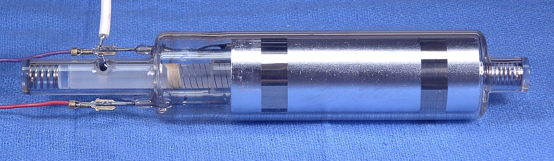 However, even the new ballast resistors doesn't seem to cure all lasers. At this point, I am fairly convinced that there must be internal tube problems with some of them. My wild guess would be that it has to do with contact between the cathode-end mirror mount and the thin film cathode deposited on the glass envelope. Or that in higher mileage tubes, the work function of the thin film cathode becomes high enough that the discharge occasionally jumps between it and the cathode mirror mount or other structure. Also see the section: The Zygo 7701/7702 HeNe Laser Tube.