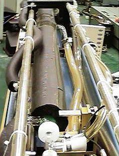 Since there are external line selecting optics, this laser uses Brewster windows on the end of the tube - not that common with CO2 lasers due to losses and large Brewster angle required for the window material (ZnSe?).