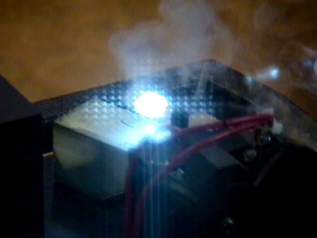 The actual YAG rod is .250 in diameter and 5.25 inch long and is completely liquid cooled. The krypton bulb has a 6 inch arc with an envelope approximately 3/8 inch in diameter. It has an output I'm told of many thousands of watts (yet to be precisely determined).