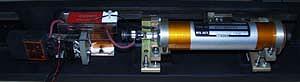 View 04 - Vertically arranged CO2 plasma tube, and HeNe pointer tube and