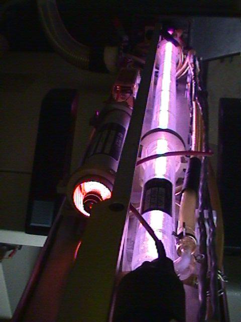 View 08 - Plasma tube and HeNe alignment laser are lit and ready for action