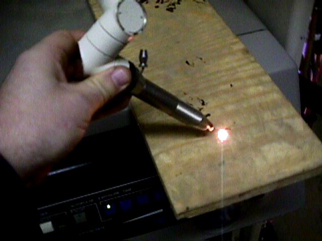 1" from the end of the tip. Note the assist gas port at the top of the picture