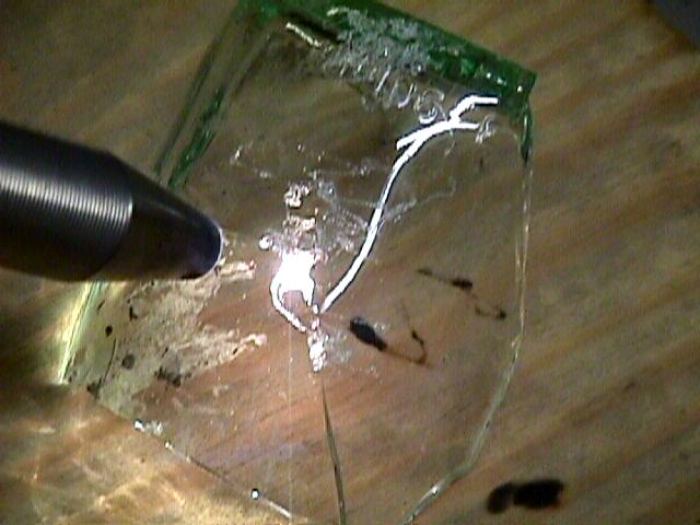 glass a tearing/poping sound is produced and the glass is lit up from the