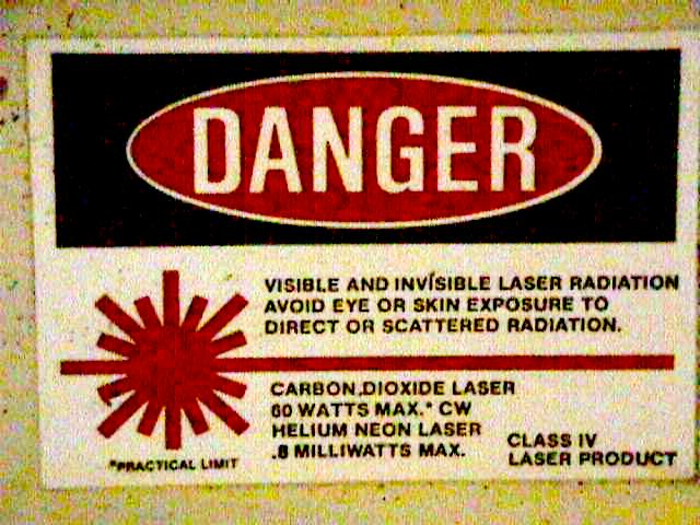 View 16 - Laser warning tag 60 W max for the CO2 beam and the .8 mW HeNe