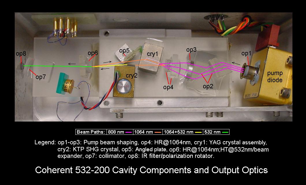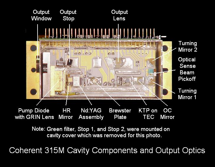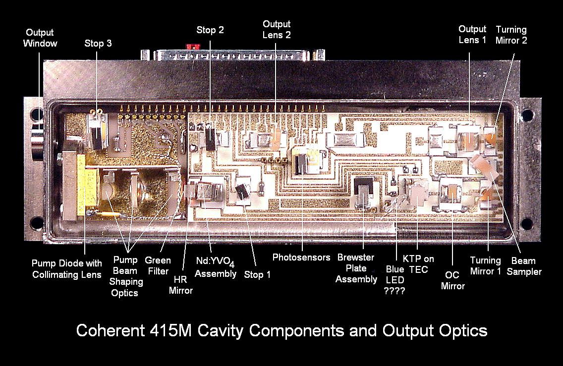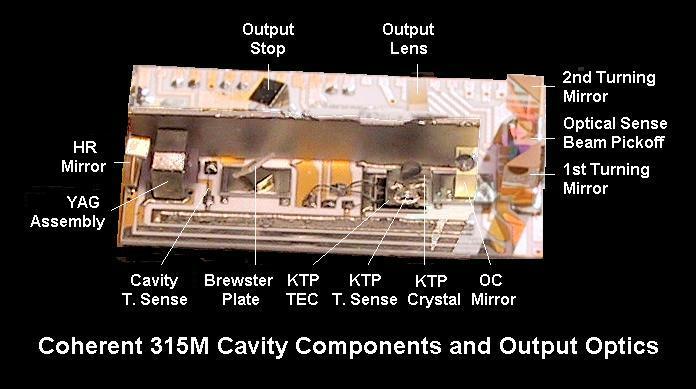 This is another Coherent DPSS laser also called a "Compass" but of somewhat higher power and much more wide open construction than the 315M. This one is definitely a ring cavity design.
