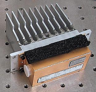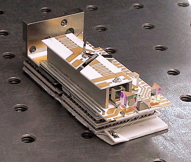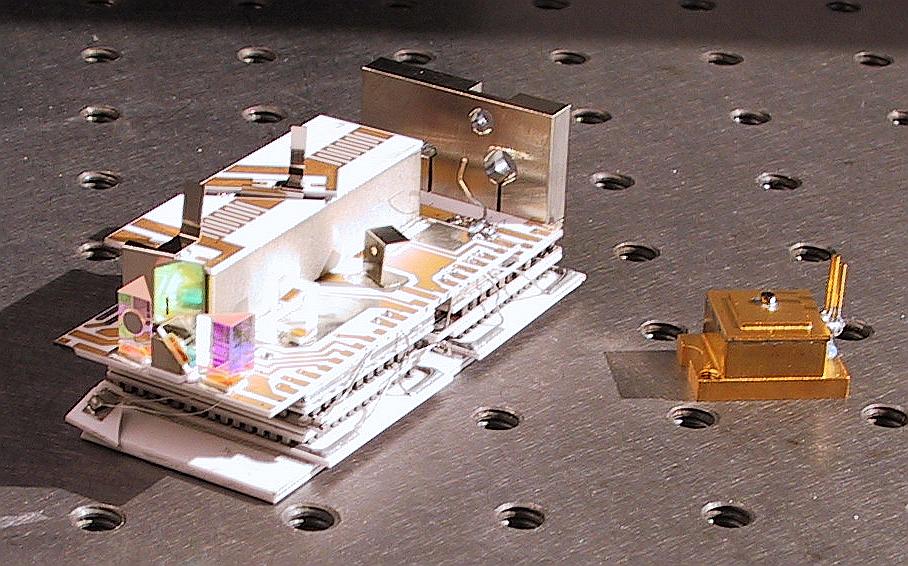 This is a compact laser head (about 4 inches long, the holes on the optical table are spaced on 1 inch centers as a handy reference), manufactured with robotic assistance.