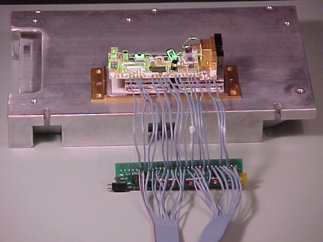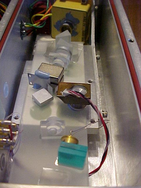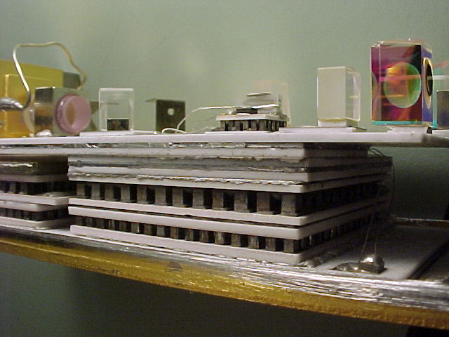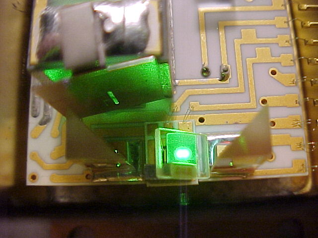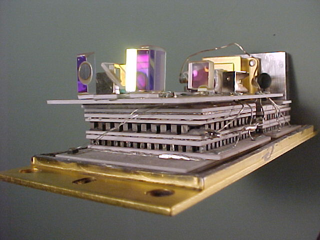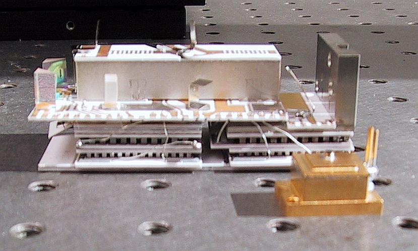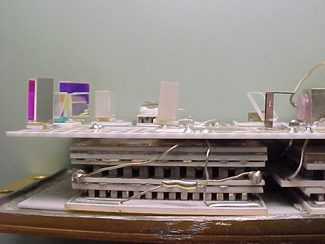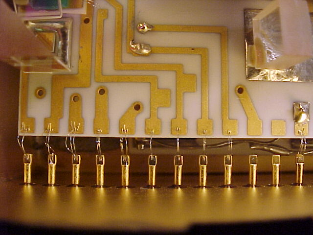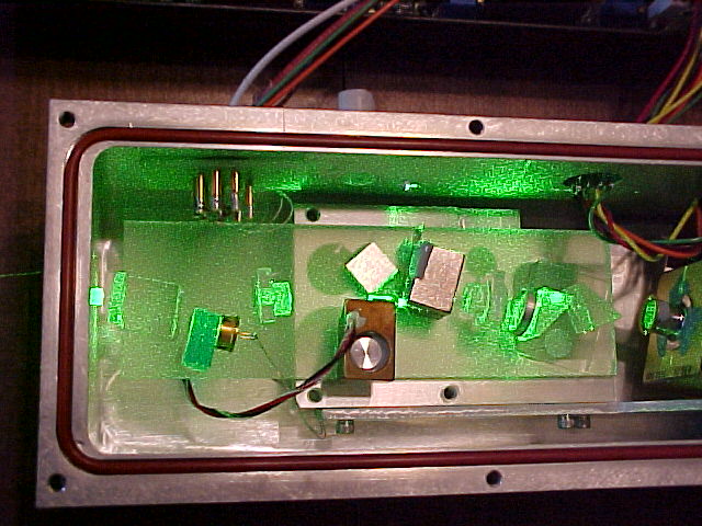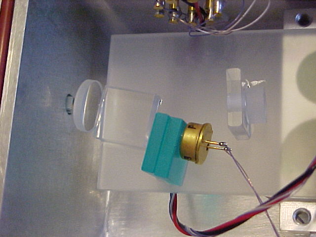 The only other structures you can see in the photo are the laser diode. (the gold box in the upper right hand corner), and the laser cavity - the ceramic box with the gold zigzags. Too bad I can't open the box without destroying the goodies inside. :)