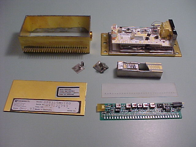Here are photos of another C315 laser and an exploratory - you can call the kids back in now. :) It turns out that no hot plate is needed to remove the lid - gentle persuasion with an Xacto knife at one corner enabled the lid to be popped off easily. And, note the corrosion under the lid - that shouldn't have happened even under severe conditions.