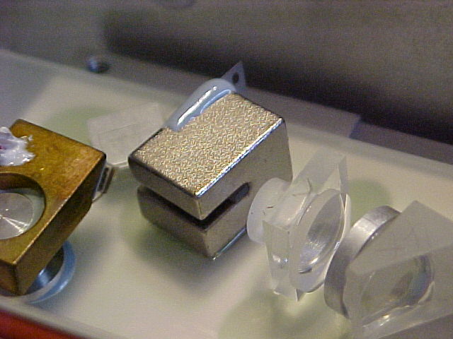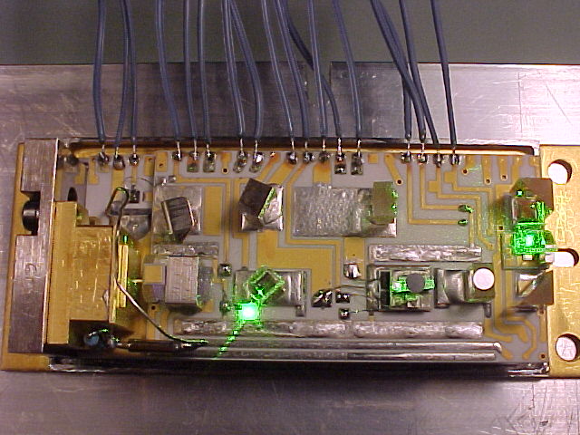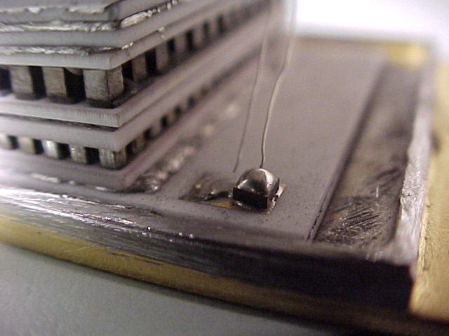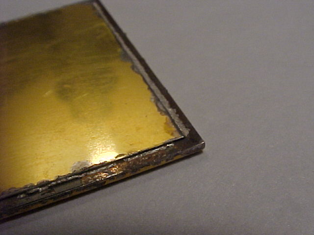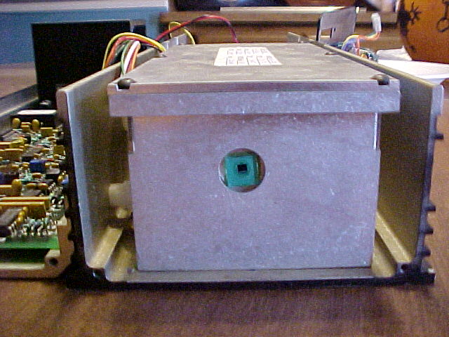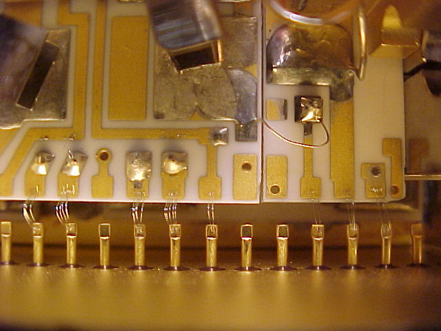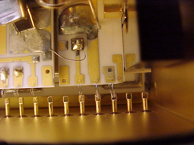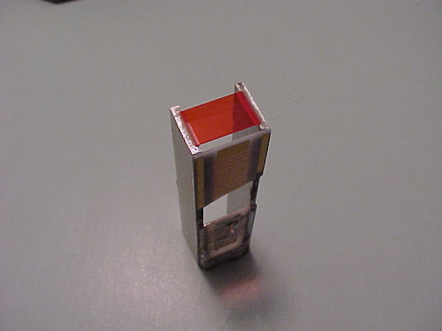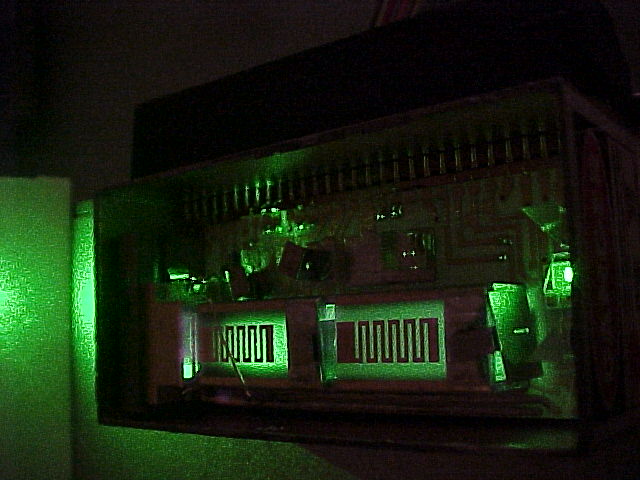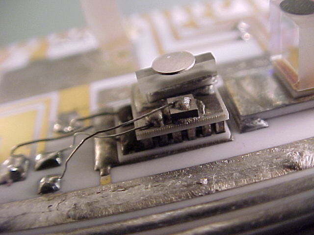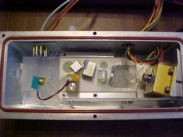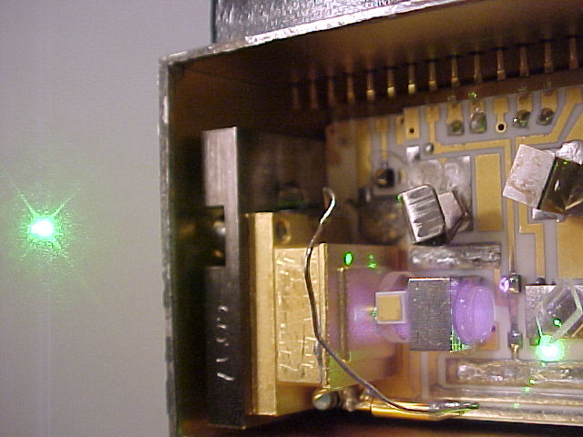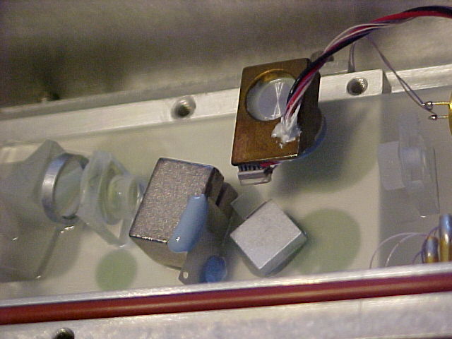 This unit was made in December of 1997 and shows a reaction between the solder and the metal of the case. I am sure that complaints of the output window falling off will be heard as more of these units fall into the hands of the common experimenter. Looking into the window of a newer unit (March 2001) shows a cold solder type of joint. The older unit looks a lot worse, almost a crystalized look to the solder.