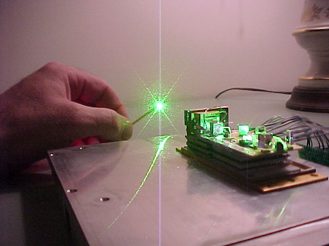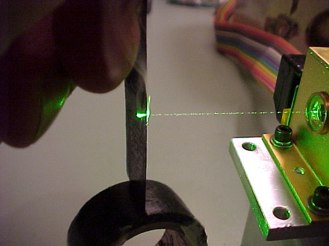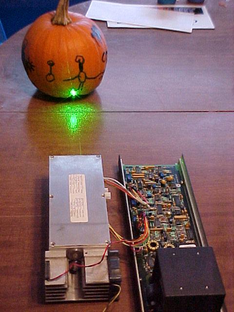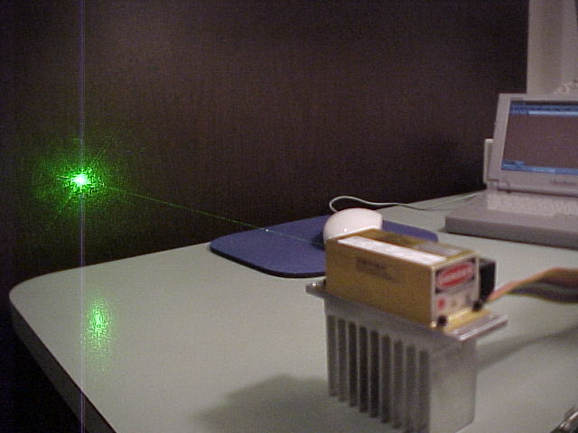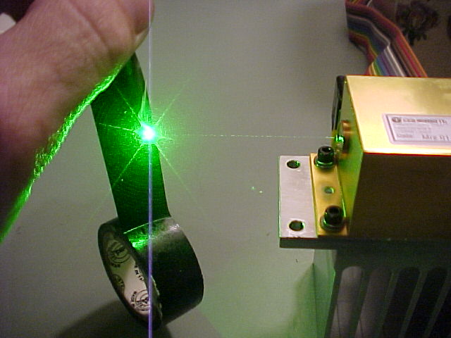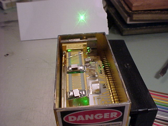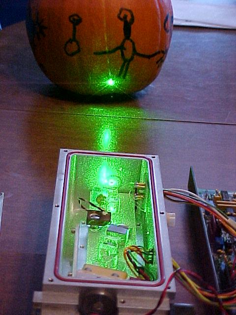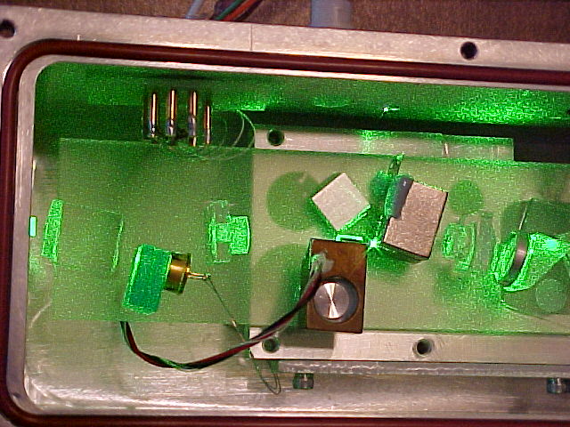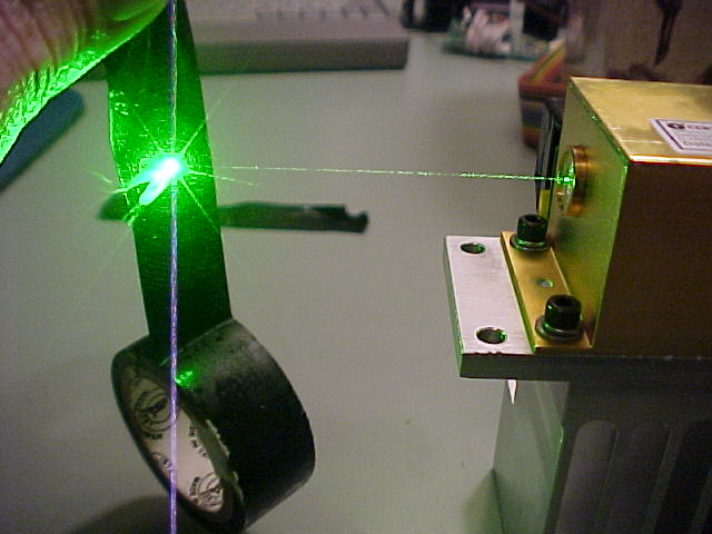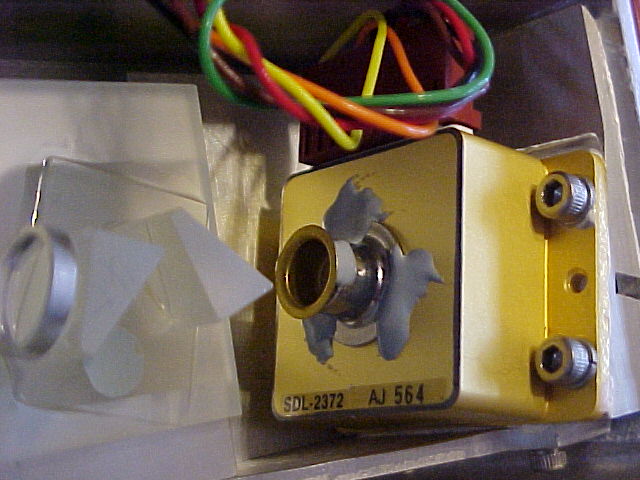Unfortunately at this point the laser is non-functional. When I took the baseplate of the unit off by milling it out from the bottom, the vibrations caused the YAG rod assembly and HR to break free of their mounts. (Hey, maybe that's covered by the warranty! :) --- Sam). The only way this thing will lase again is if the parts were reassembled. Nothing got dinged though. The diode still works.