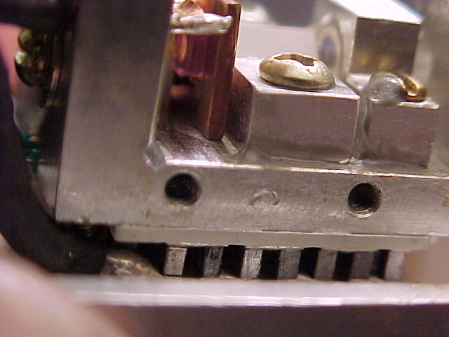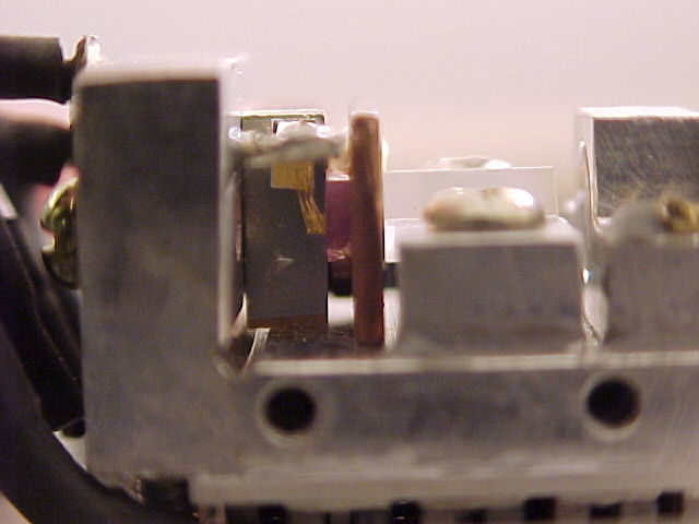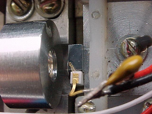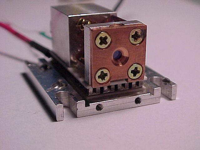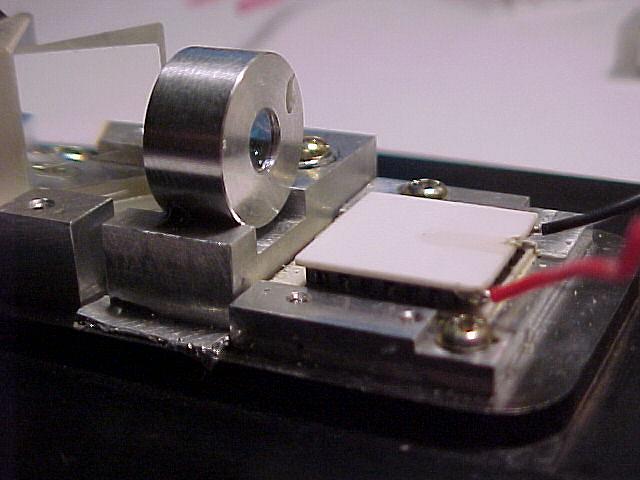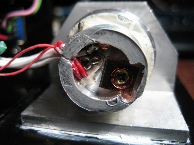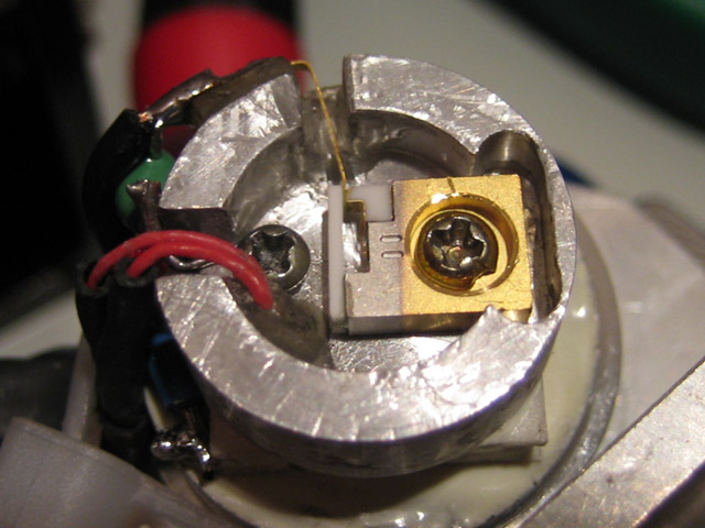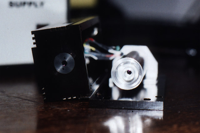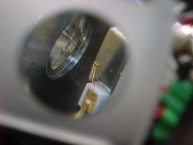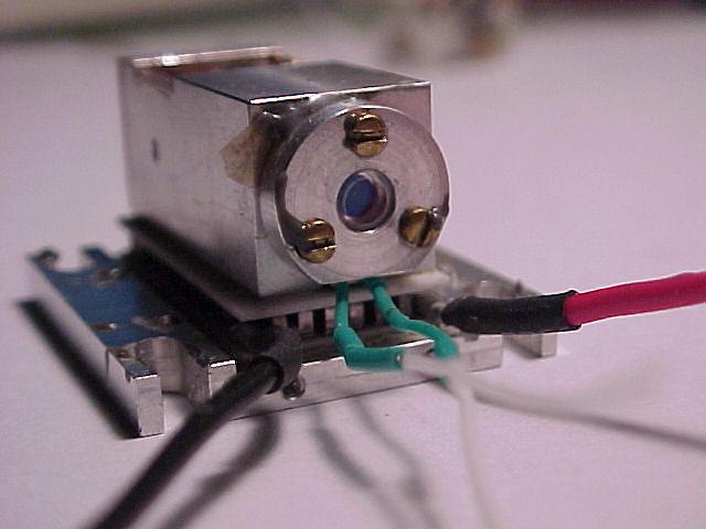 These pictures are of a LambdaPro (Chinese made) 140 mW green DPSS laser. They show the replacement of the dead (0.8 Watt?) pump diode with a new 1.2 Watt version.
