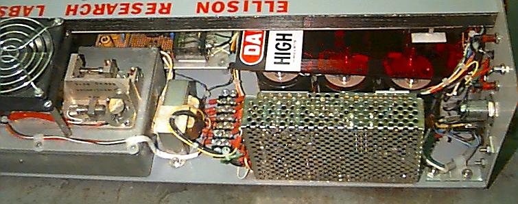 The rep rate is based on the power supply charge limits and not the cooling capability of the cavity. The unit was fired at a rep rate of once every 5 to 6 seconds for better than 5 minutes in one instance with no perceived change in power and or damage to flashlamp or rod (I have both a ruby and a Nd:YAG rod that I can interchange in 10 min.) Will the bulb take 2,500+ Joules of input? No - the limits of the EG-G FX-103 flashlamp are 1,550 Joules explosion energy and when you work up your power supply, the maximum input is calculated from: repetition rate, cooling type, and percentage of explosion energy versus lifetime (# of shots). The original flashlamp lasted through many months of play with power ranging from the rod's threshold of approximately 640 VDC up to the 1,200 VDC master pulse.