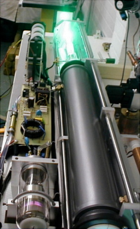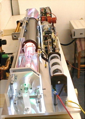 View 01 - Copper vapour laser in operation at 64 pps. The overall length