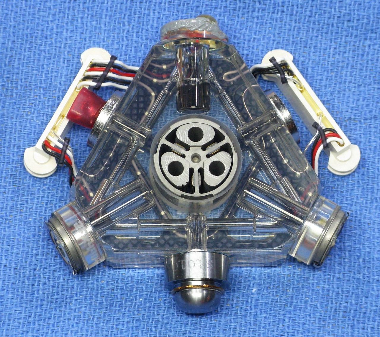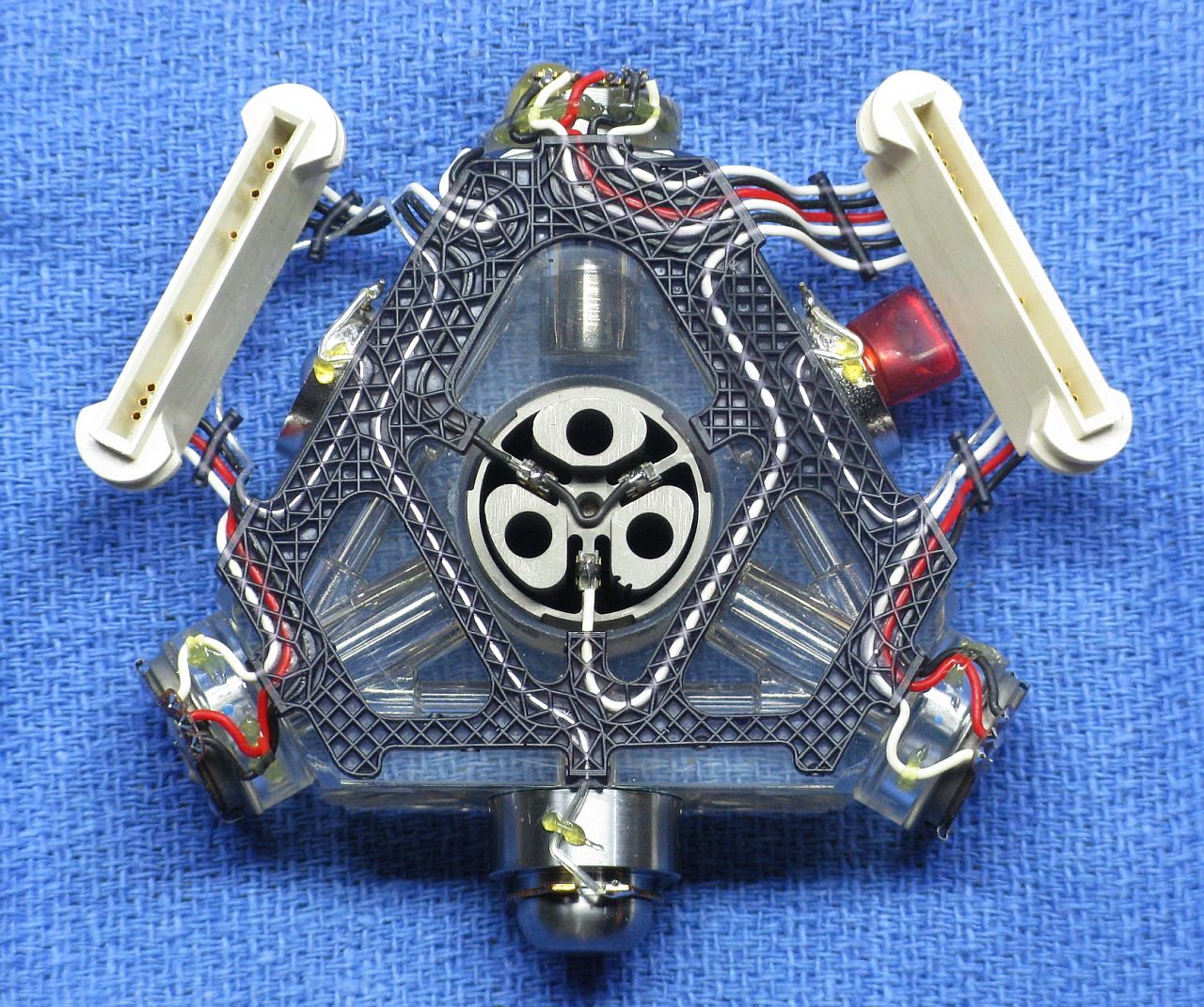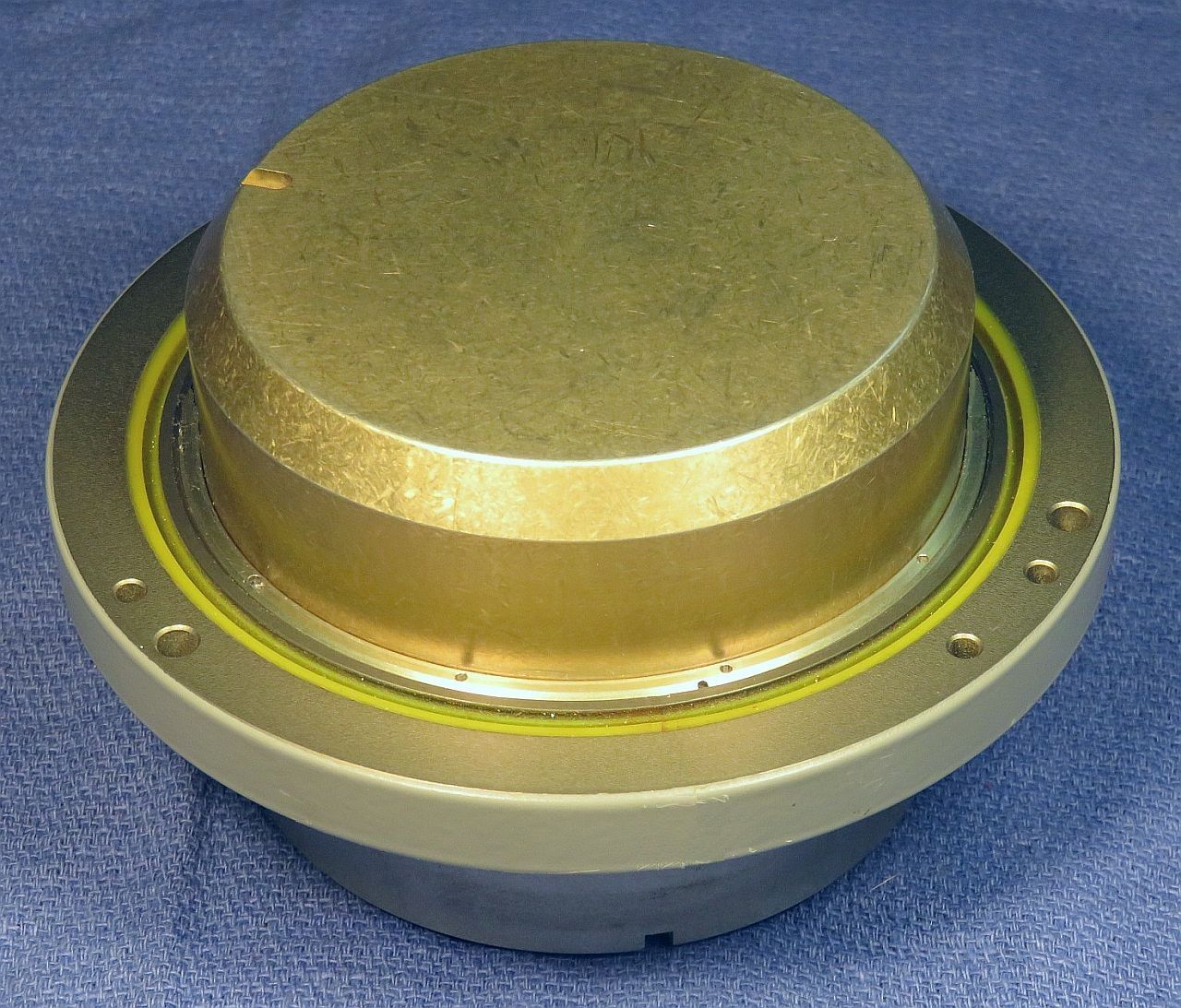 This is the complete core assembly of the Honeywell GG1342 ring laser gyro. The exterior view is of a unit manufactured in 1985 but the skins don't survive going inside. ;( :-) So, a different unit (which I acquired first already partially disassembled) was used for the interior views. Based on date codes found on several parts, it was manufactured in the early 1990s. However, the internal construction of the two units is virtually identical.