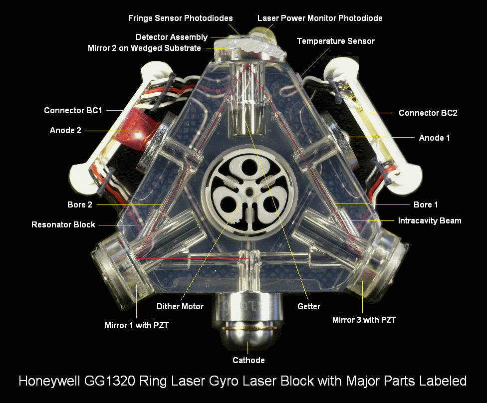 The GG1342 was the first RLG Honeywell produced commercially, but is structurally and functionally similar to later models like the still current GG1320 (below).