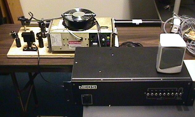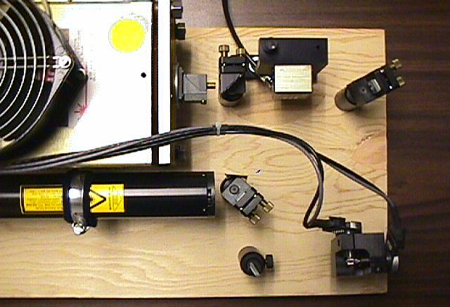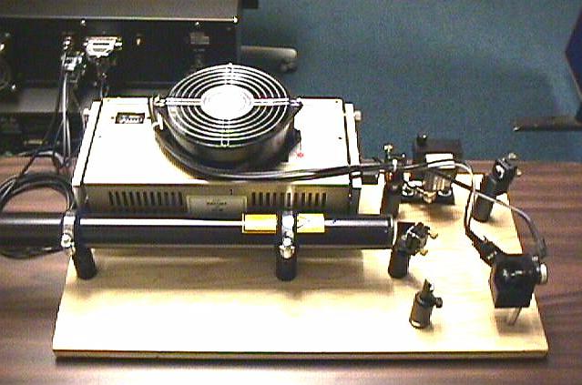 lasers, this one uses a HeNe laser. The laser is powered and the path of the