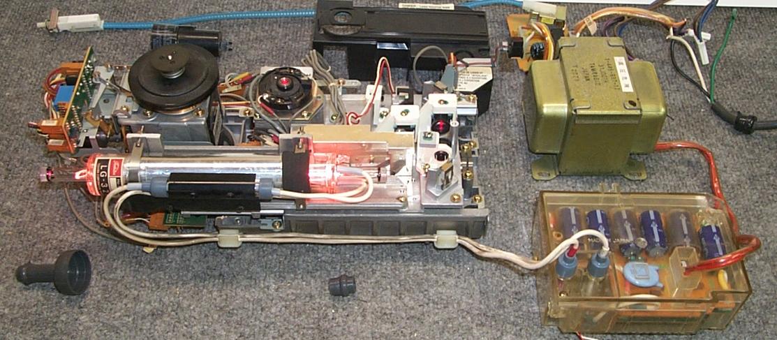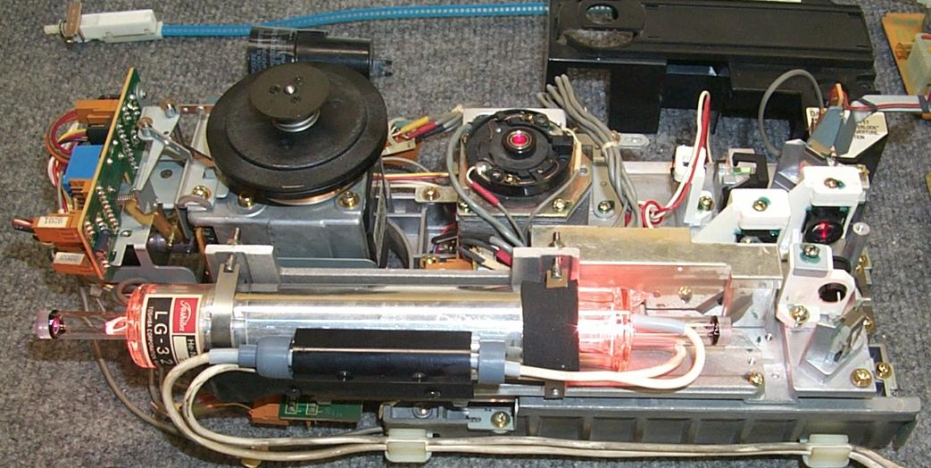View 04 - Closeup of the optical deck. The laser tube is a Toshiba