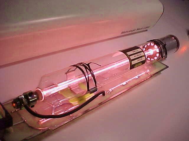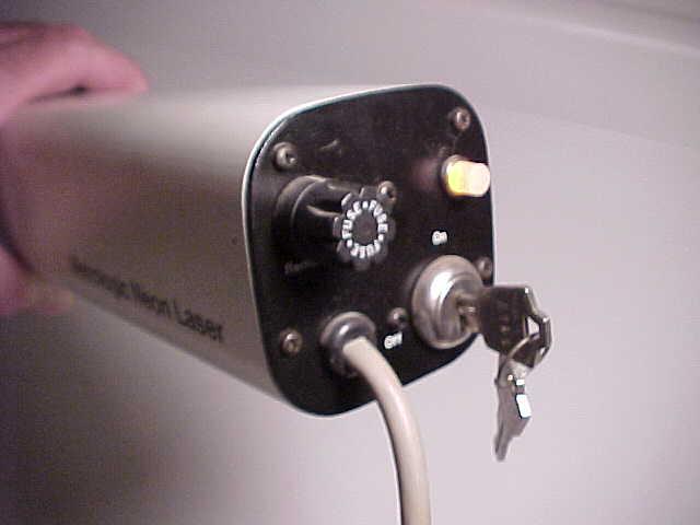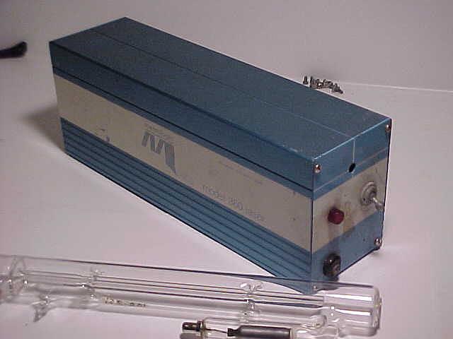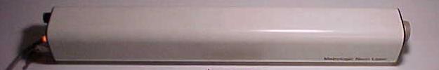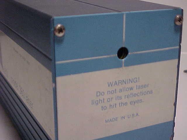 This is a model ML855 self contained HeNe laser. This unit is rated 5.4 mW output at 632.8 nm (normal red), TEM00, 1.2 mR divergence. 105 to 115 VAC input, 15 W. This general design is typical of the more modern Metrologic lasers. Later ones (like this) used Melles Griot tubes.