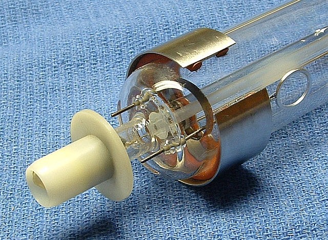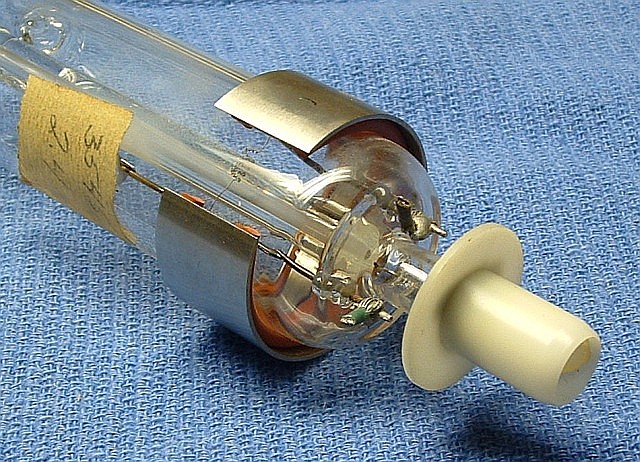This 5200 head is generally similar to the one above, but may be an older design - or the original - with separate THICK anode and cathode/filament cables, the ballast in the anode cable, and a single filament.
