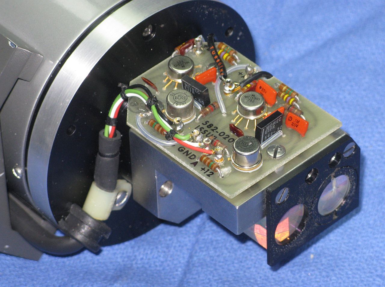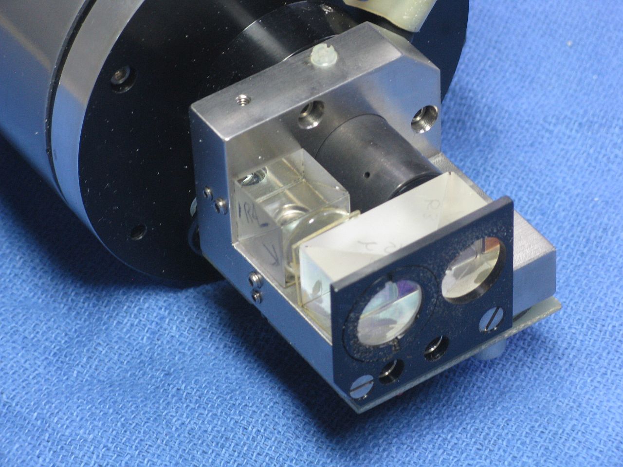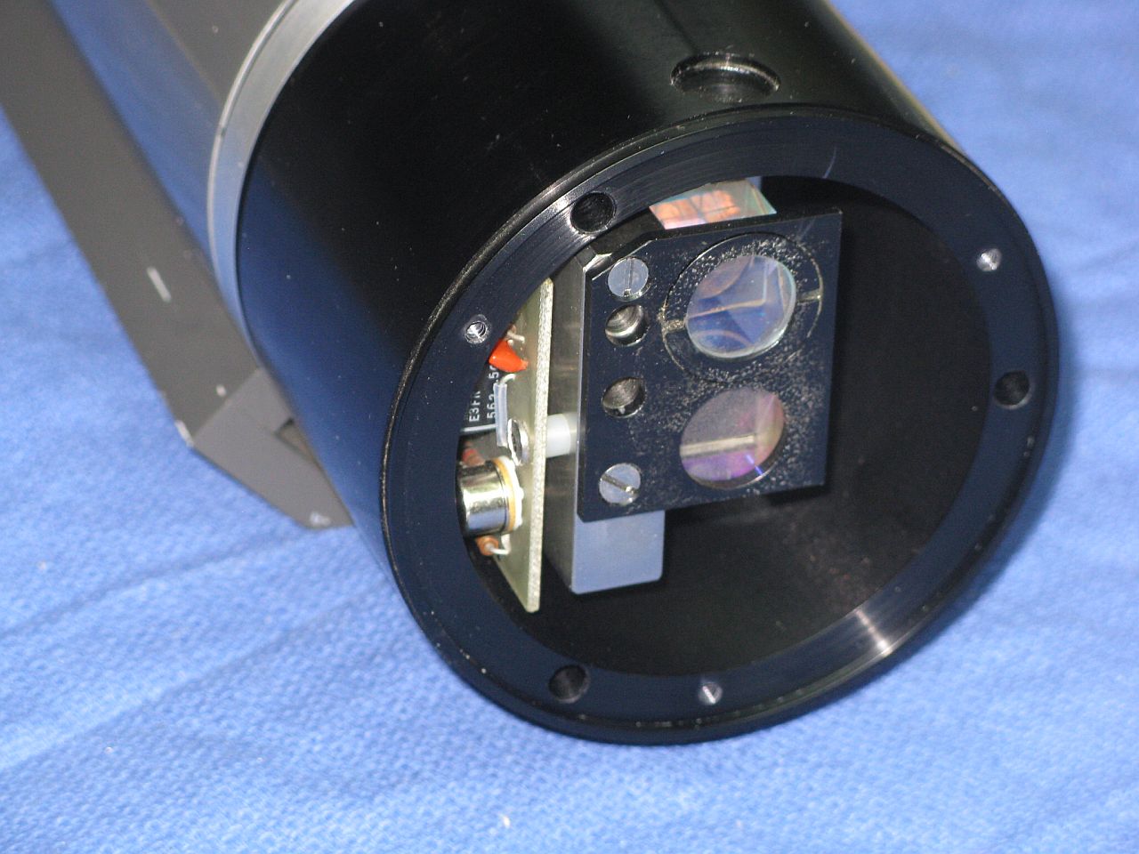 This laser head may be very slightly newer than the one above, but also uses a two-Brewster laser tube. It's actually called a "Tooling Laser", so it was probably intended for applications like alignment and positioning in a factory. It uses the more modern 5204 power supply, and as can be seen, it still works. :)