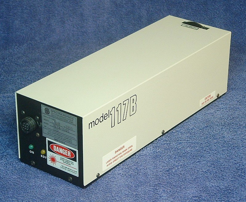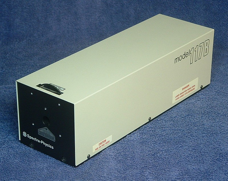 This is a small "Stabilite" laboratory laser with its separate exciter. The minimum guaranteed output power of the SP-120S laser is 6 mW (red, 632.8 nm) though quite a bit more may be possible when new.