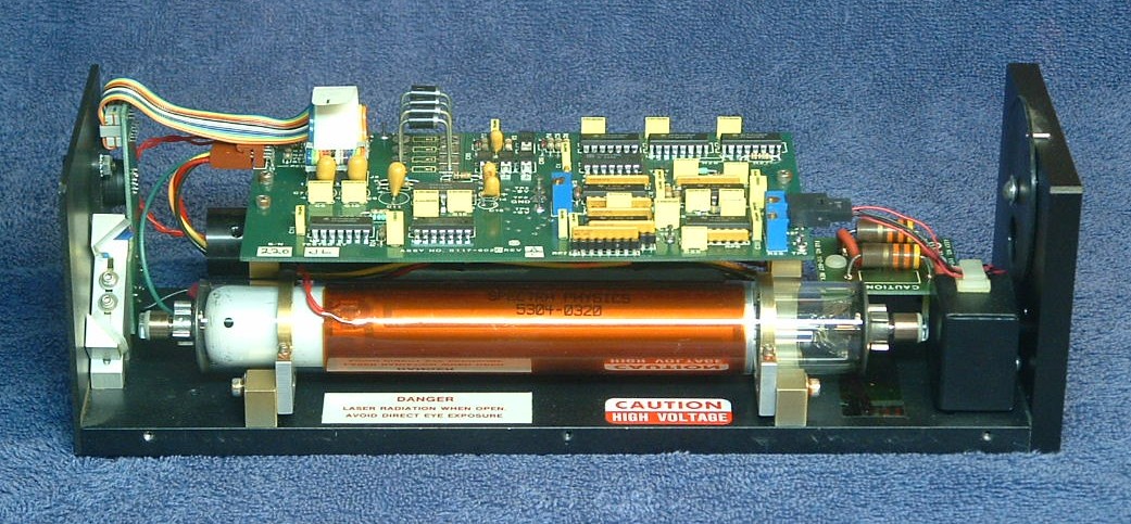 The interior construction of this laser head is quite similar to that of the slightly larger (30 mW) Spectra-Physics HeNe model shown above.
