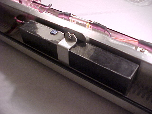 This is either the guts of a SP-120 laser head or the OEM version of the SP-120 where the laser is installed in someone else's equipment. The L-shaped frame is very stable though the HeNe tube itself is just suspended by an O-ring cushioned holder at each end. These can be adjusted slightly in 2 dimensions (pan and tilt) to center the tube, which also provides fine mirror alignment. Coarse mirror alignment is via mounts with three hex-head screws. I don't know the age of this particular laser but with some tweaking of the mirrors, I was able to get over 7 mW out of it - better than the new specs! Note that the bracket which sets the angular position (to align the polarization orientation and stabilize the tube against mechanical shock) is missing (reason unknown). This would be visible in View 08, clamped to stainless steel Brewster cover and cathode stem. the