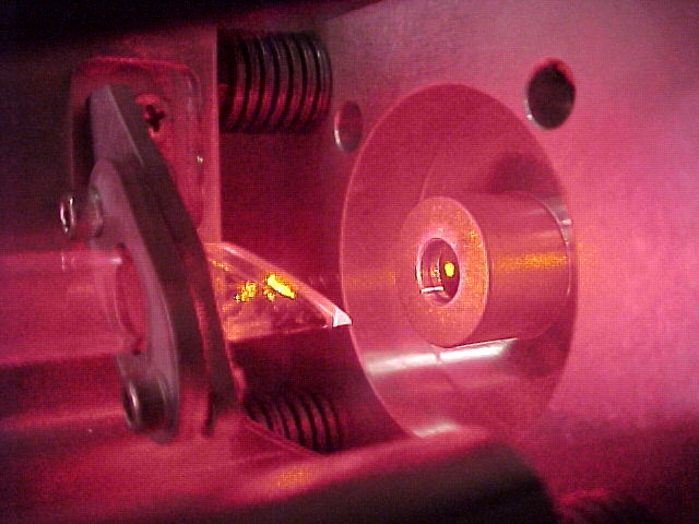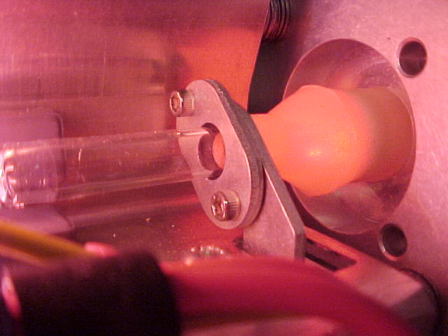 Ron Soyland had a gas fill valve installed which required the moving of one of the end-plates of the central housing to the outside of the housing, and the drilling of a hole in the front face (which I plugged). It's interesting to see the evolution of these lasers. Look at how the tube length grows, the mirror mounts change and better adjusters are added as they went through the series of Models 110, 111, 112, and 113.