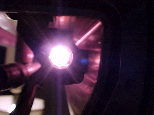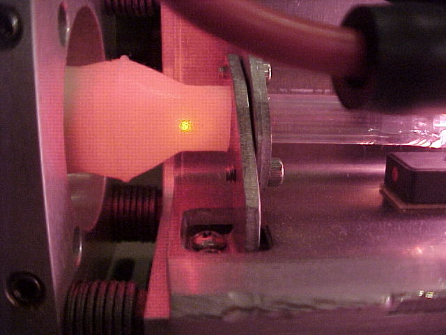However, I have since obtained a third SP-130B which originally had a red/blue discharge. But while running for a few hours, the color gradually changed to a mostly correct white-ish red-orange. And, with an optics cleaning and alignment, this SP-130B actually lases. The output power is not up to spec - about 0.25 mW at maximum current (it's rated at 0.75 mW) - but that's still a bit amazing considering its age.