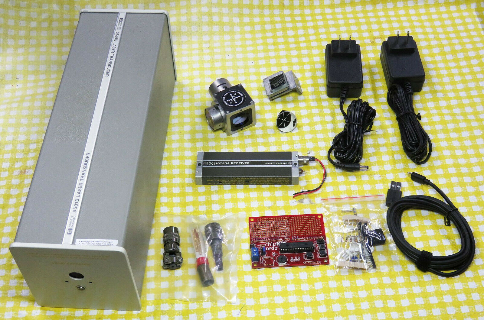 Photo of Typical Parts for Single Axis System using 5517 Laser (Left) and 5501B Laser (Right) with Original µMD1