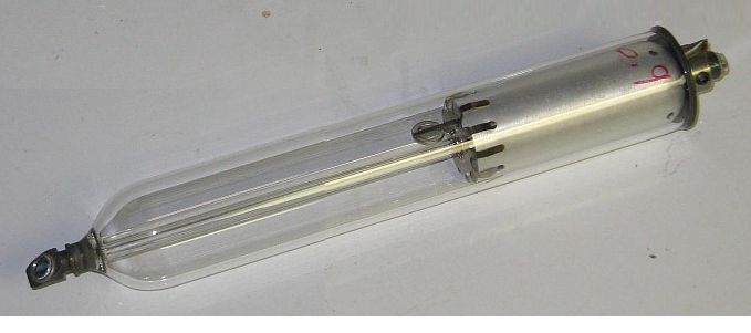 Serving Suggestion: Melles Griot/Pacific Lasertec 05-LHB-570 Tube in Test Fixture and Photo of Similar Tube. The High-Q tubes can be mounted