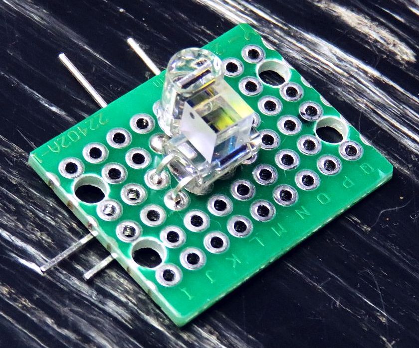 In both cases, the PBS cube can be attached to the the PDs with high quality clear Epoxy or UV-cure optical cement on its faces, or using tiny drops of 5 minute Epoxy on its edges. DO NOT use SuperGlue™ (Cyanoacrylate)!!!