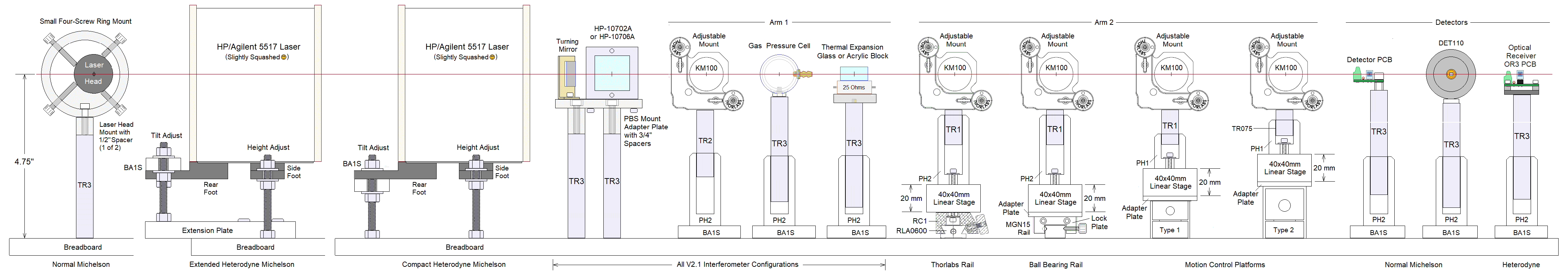 Michelson Homodyne Interferometer Kit. Here are links to all of