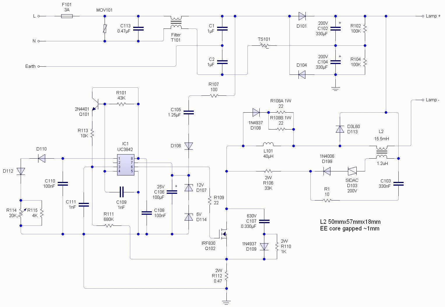 the schematic of an inverter type unit for driving a neon sign. It has a pair