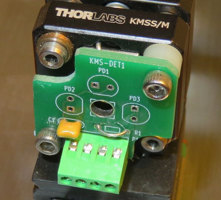 Almost any relatively small-area silicon photodiode will suffice for PD1 and PD2. Those that are known to be satisfactory include the Everlight PD438C/S46, Excelitas VTD206KH, OSRAM SFH-206K, and Vishay BPW46, all have an active area of 7-8 sq. mm with a side-facing planar entrance surface. Where the beam incident on the photodiode is larger, a focusing lens can be used to reduce it, or where there is plenty of power, simply live with the proportional reduction in sensitivity. The kit PDs are currently the OSRAM SFH-206K.