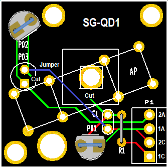 The PD1 PCBs include only the photodiodes, R-Protect, and an AC bypass capacitors as shown in the schematic below.