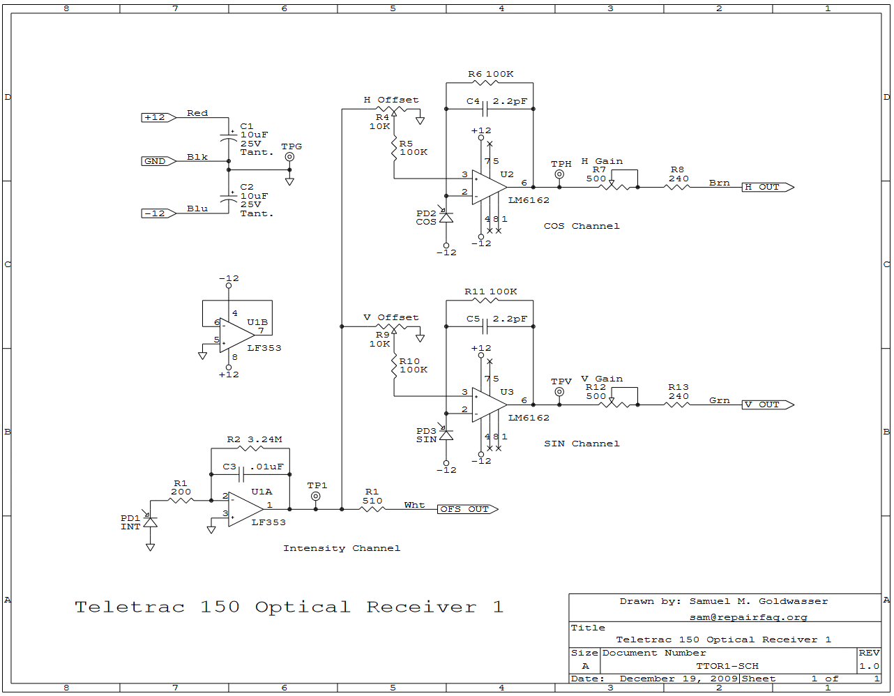 The third will be a simple PCB that accepts the two optical inputs and outputs RS422. So it should be a straightforward solution not requiring high speed op-amps. Its bandwidth is greater than 3 MHz with an optical power below 25 µW.