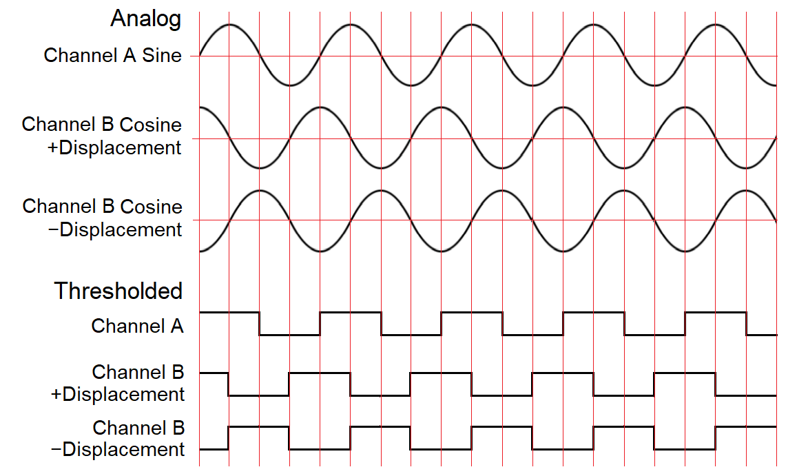Channel A and B Signals with Positive (Left) and Negative (Right) Displacement